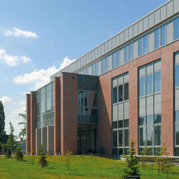 Entstanden ist ein moderner Komplex mit einer Gesamtfläche von rund 18.500 m2. Dabei sind die Gebäude der didaktischen Pavillons horizontal streng gegliedert. Für die Fassadengestaltung waren von Anfang an Klinker vorgesehen; große Klinker- und Glasflächen wechseln sich in gleichen Abständen ab. Die geschwungenen, ellipsenförmigen Komplexe der Hörsäle bilden dazu einen gelungenen Kontrast. Beachtenswert sind einige dekorative Fassadendetails, z. B. Reliefs, die mit den Röben Klinkern gestaltet wurden. Diese Wände dringen zum Teil in das Innere des Gebäudes ein und arrangieren so den funktionalen Raum. Die Wände der Hörsäle im Inneren der ellipsenförmigen Gebäude wurden ebenfalls teilweise verklinkert.