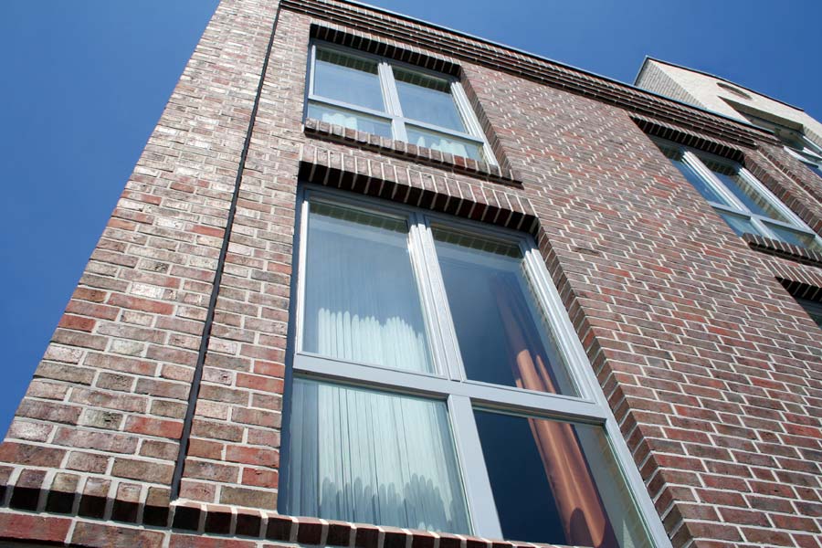 Ein zentraler Aspekt der Planung war die Integration der Stadtvillen in das vorhandene städtebauliche Umfeld: "Hier in Leer sind über die Jahrhunderte hinweg fast ausschließlich Ziegelhäuser errichtet worden", so Architekt Gerhard Eden. "Das gilt insbesondere für den Bereich der historischen Altstadt, der ganz stark durch seine charakteristische Backsteinarchitektur geprägt wird. Um hier einen sensiblen Übergang zu schaffen, stand das Material Klinker für unsere Stadtvillen also von vorn herein fest."
