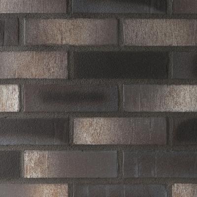 Dunkle Ziegelsteinwand mit grauen Fugen.