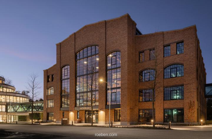 Im Zusammenspiel der Klinker mit den großen Fensterflächen sowie den elegant detaillierten Fensterrahmen aus Aluminium ist ein kraftvolles, aber dennoch zurückhaltendes Fassadenbild entstanden, das eindrucksvoll den lebendigen Charakter und die gewandelte Funktion des Standortes unterstreicht. Oberhalb der Fenster wurden für einen zügigen und kostengünstigen Baufortschritt insgesamt rund 250 m von Röben vorgefertigte Grenadierstürze eingesetzt. Optisch sind dabei auch bei näherem Hinsehen keine Unterschiede zum umgebenden Mauerwerk zu erkennen, und es gelang den Planern so, den vorgegebenen, knappen Zeitrahmen für die Fertigstellung einzuhalten.